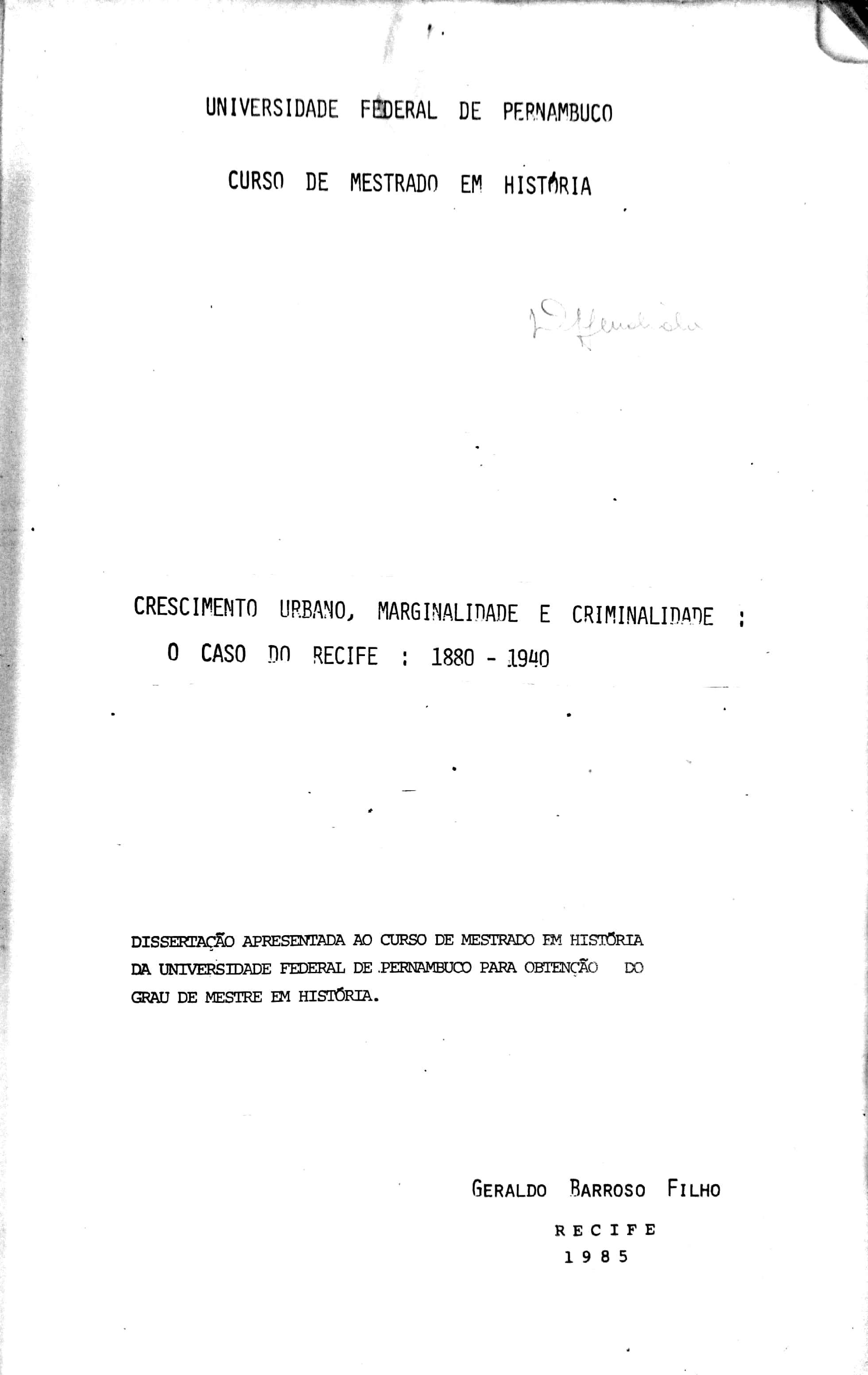 | Defesa: | 1985 |