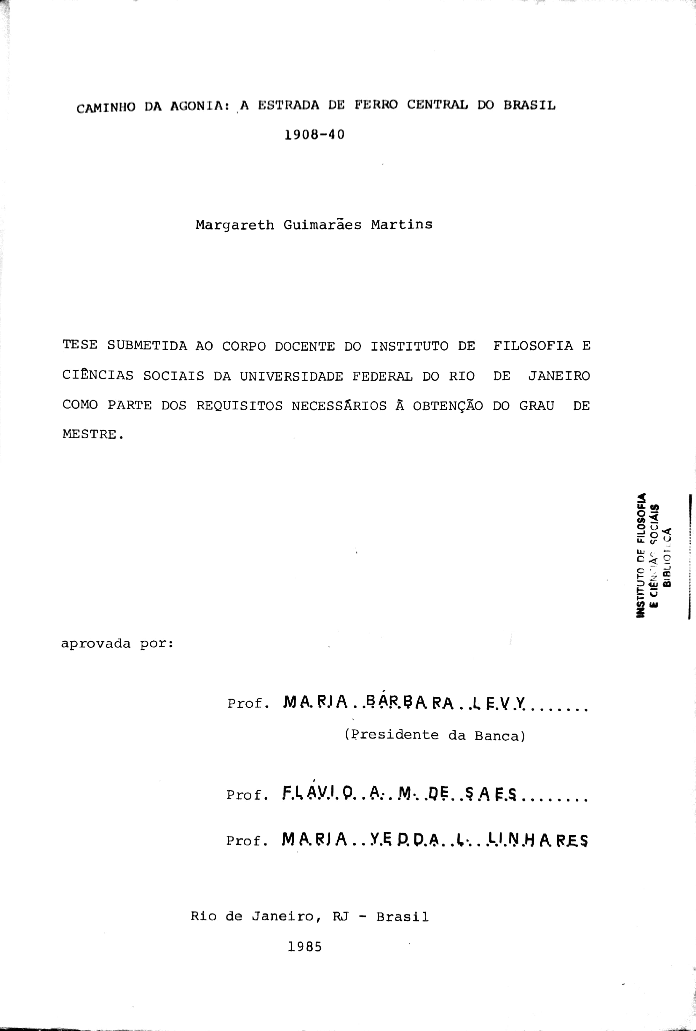 Esse trabalho propõe estudar, sob perspectiva histórica, o desempenho da Estrada de Ferro Central do Brasil, entre o período em que a indústria ferroviária, com sede no Rio de Janeiro, representou um papel fundamental no desenvolvimento da região Centro-Sul, e o período no qual o transporte ferroviário perdeu essa importância relativa. Seu objetivo é, portanto, contribuir para a compreensão do processo dinâmico que fez com que as estradas de ferro perdessem a sua posição de principais vias terrestres de escoamento da produção, abastecimento e transporte de passageiro da região. É importante observar, entretanto, os limites dessa contribuição, na medida em que essa dissertação não pretende descrever ou analisar o desenvolvimento da indústria de transporte ferroviário no país, a partir da extrapolação do caso da Central do Brasil. Ao contrário, a contribuição pretendida é no sentido de recuperar elementos importantes (porém não suficientes), que auxiliem a interpretação desse contexto mais amplo. Assim, a análise está restrita à receita da empresa, à composição do tráfego, à politica de tarifas, às despesas de custeio, ao material e às fontes de energia utilizadas, ao pessoal empregado, a administração da empresa, e, finalmente, a influência da política do Estado para o transporte ferroviário sobre a Central. O período estudado está delimitado entre os anos 1908 e 1940. |