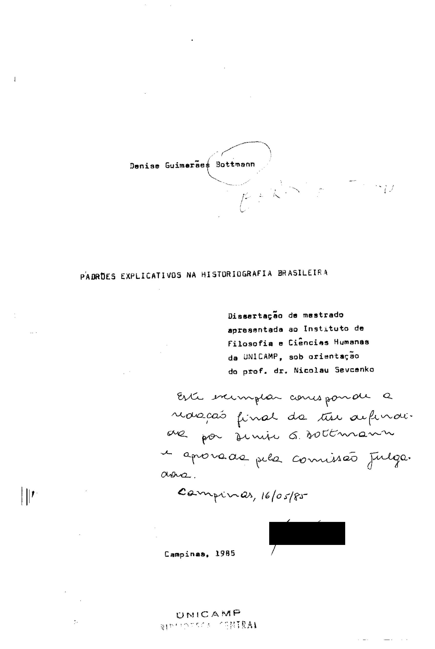 Denise Guimarães Bottmann (Orientador: Nicolau Sevcenko)