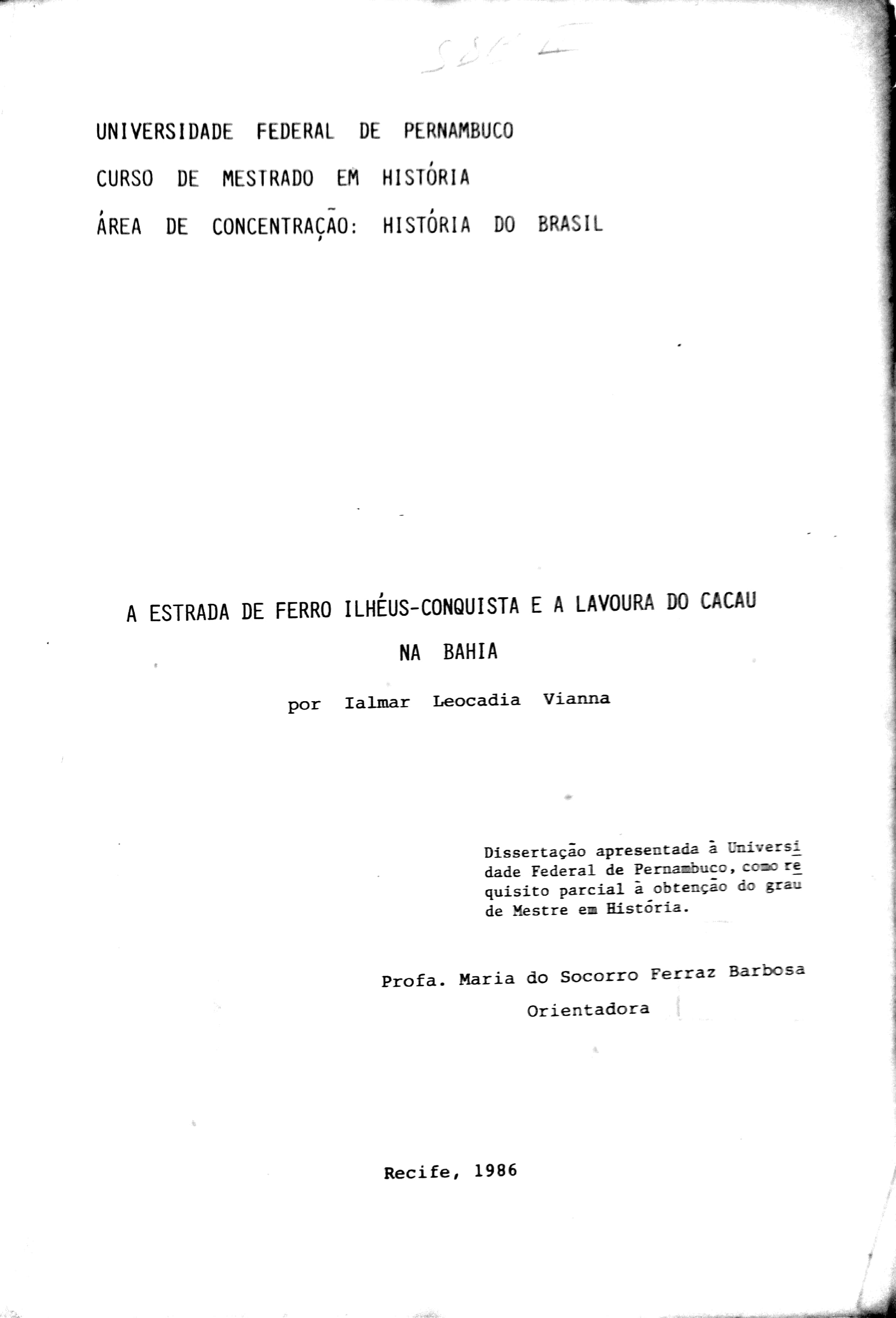 A Estrada de Ferro Ilhéus-Conquista e a Lavoura do Cacau na Bahia