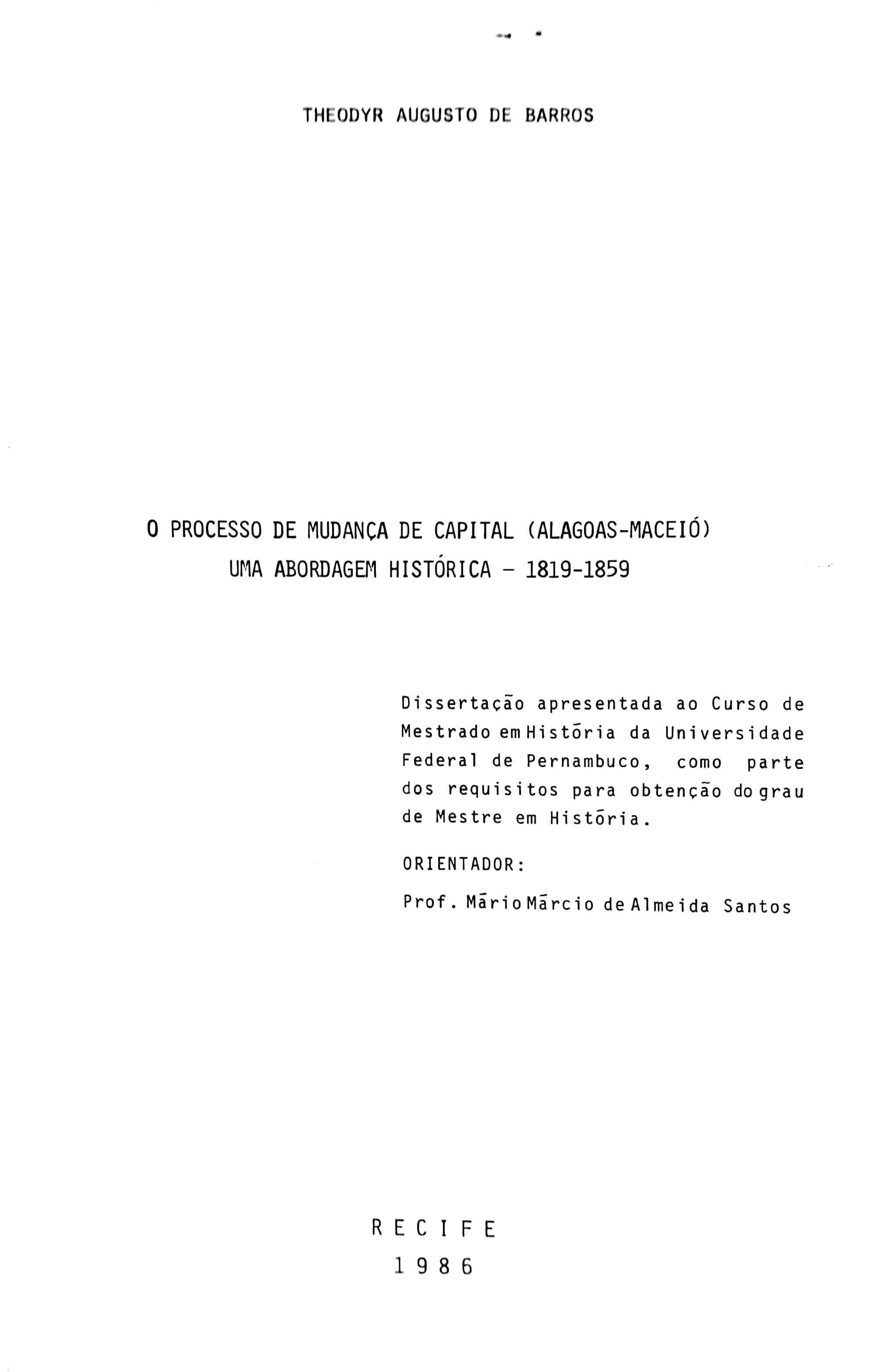 O Processo de Mudança da Capital (Alagoas-Maceió): Uma Abordagem Histórica - 1819-1859