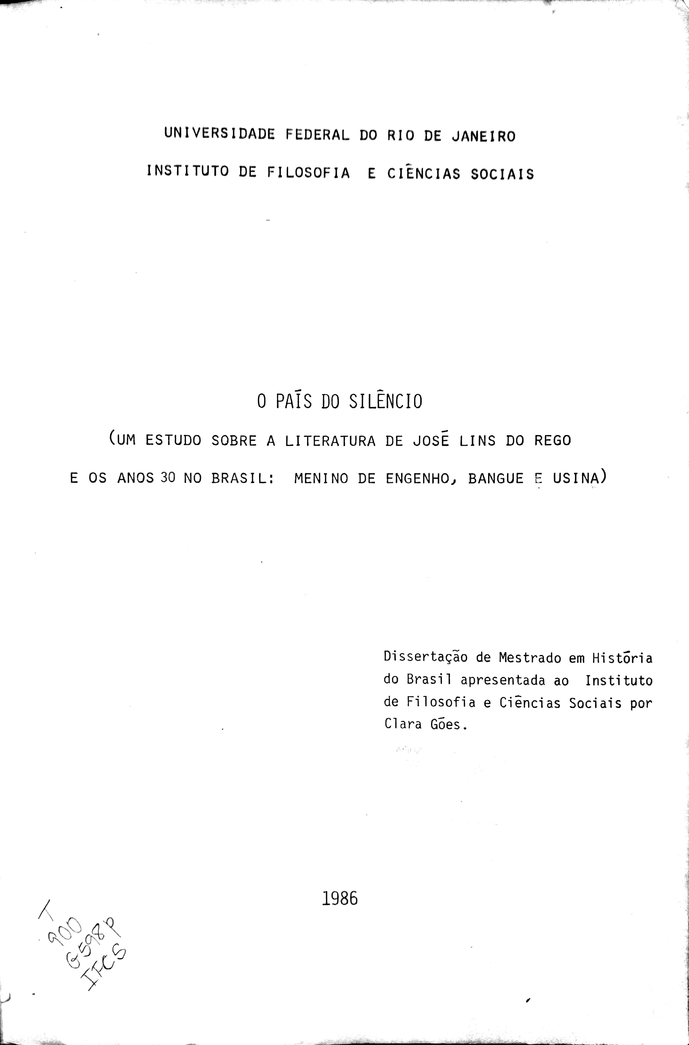 Este trabalho trata de três romances de José Lins do Rego "Menino de Engenho", "Bangue" e "Usina", numa perspectiva interdisciplinar referente à Historia e Literatura. Procuramos pensar os romances como discursos produtores de ideologias que, nos anos 30, buscam definir uma identidade nacional formada a partir da noção de povo, que esse mesmo discurso produz. Constatamos que o mundo criado pela ficção organiza práticas sociais que terminam por construir um Brasil de onde a politica esta excluida, e cuja logica de reprodução social e resolução dos conflitos, se baseia no domínio privado, locus dos interesses particulares. |