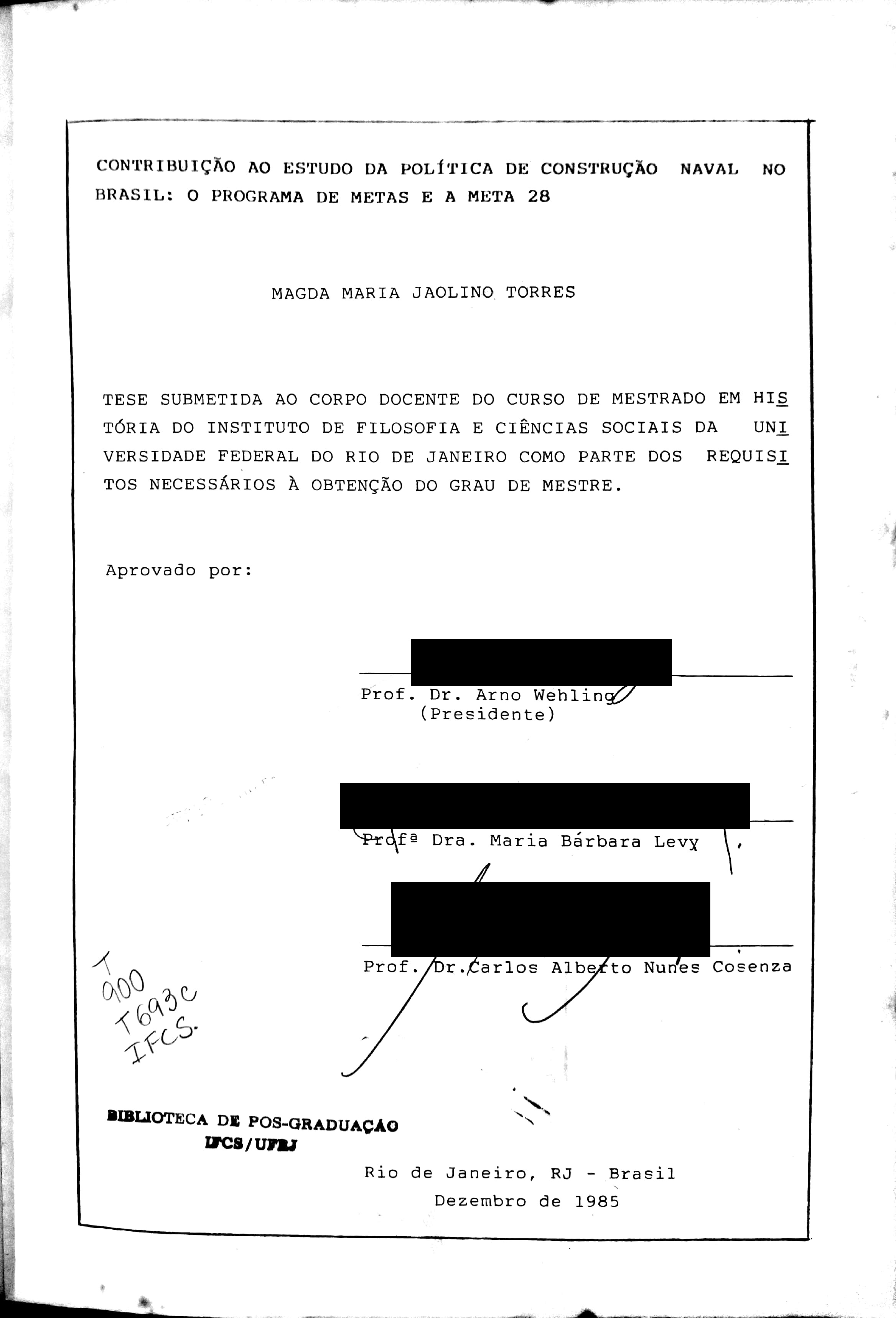 Magda Maria Jaolino Torres (Orientador: Arno Wehling)
