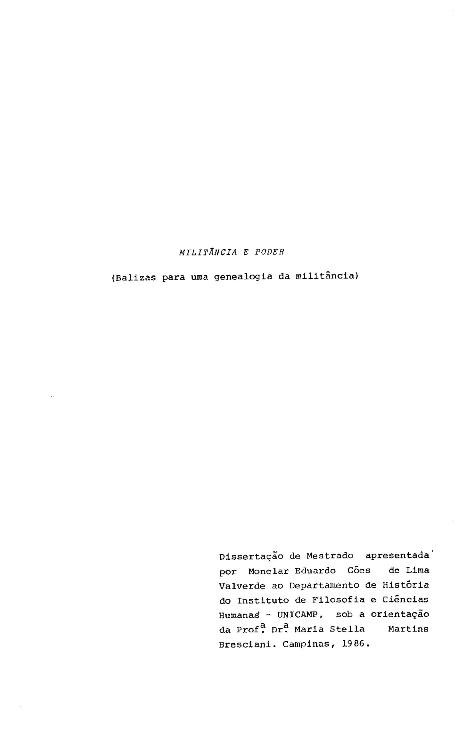 O projeto de pesquisa do qual se originou o presente texto tinha como objetivo o estudo historiográfico da conjuntura em que se teria caracterizado o declínio da predominância anarquista (isto é, anarcosindicalista) sobre o "movimento operário" brasileiro e o início da liderança comunista - o que compreenderia todo um conjunto de ações e textos situados, ao menos a princípio, entre a primeira das últimas grandes manifestações "libertárias" (a greve de 1917 em São Paulo) e a formação do Partido Comunista do Brasil (entre sua fundação, em 1922, no Rio de Janeiro, e o Congresso de 1925, pelo menos). Os primeiros exercícios de interpretação do material disponível apontaram, contudo, no campo de disputas entre modelos distintos de militância, a tematização recorrente de conceitos que se mostram afinal constitutivos da militância enquanto tal, em suas "relações" com a Sociedade, a História e a Política... O trabalho desenvolvido consistiu, então, a partir daí, numa investigação teórica e metodológica acerca daqueles temas e conceitos fundamentais. Pouco a pouco, tornou-se evidente que o sentido e até mesmo o "fato" de uma "história do movimento operário" só poderiam ser pensados a partir de uma genealogia da militância, que procurasse descobrir o seu próprio jogo de forças, revelando assim o sentido estratégico de sua definição do Sentido histórico do "movimento operário". As considerações que se seguem são o desdobramento dessa indagação. |
