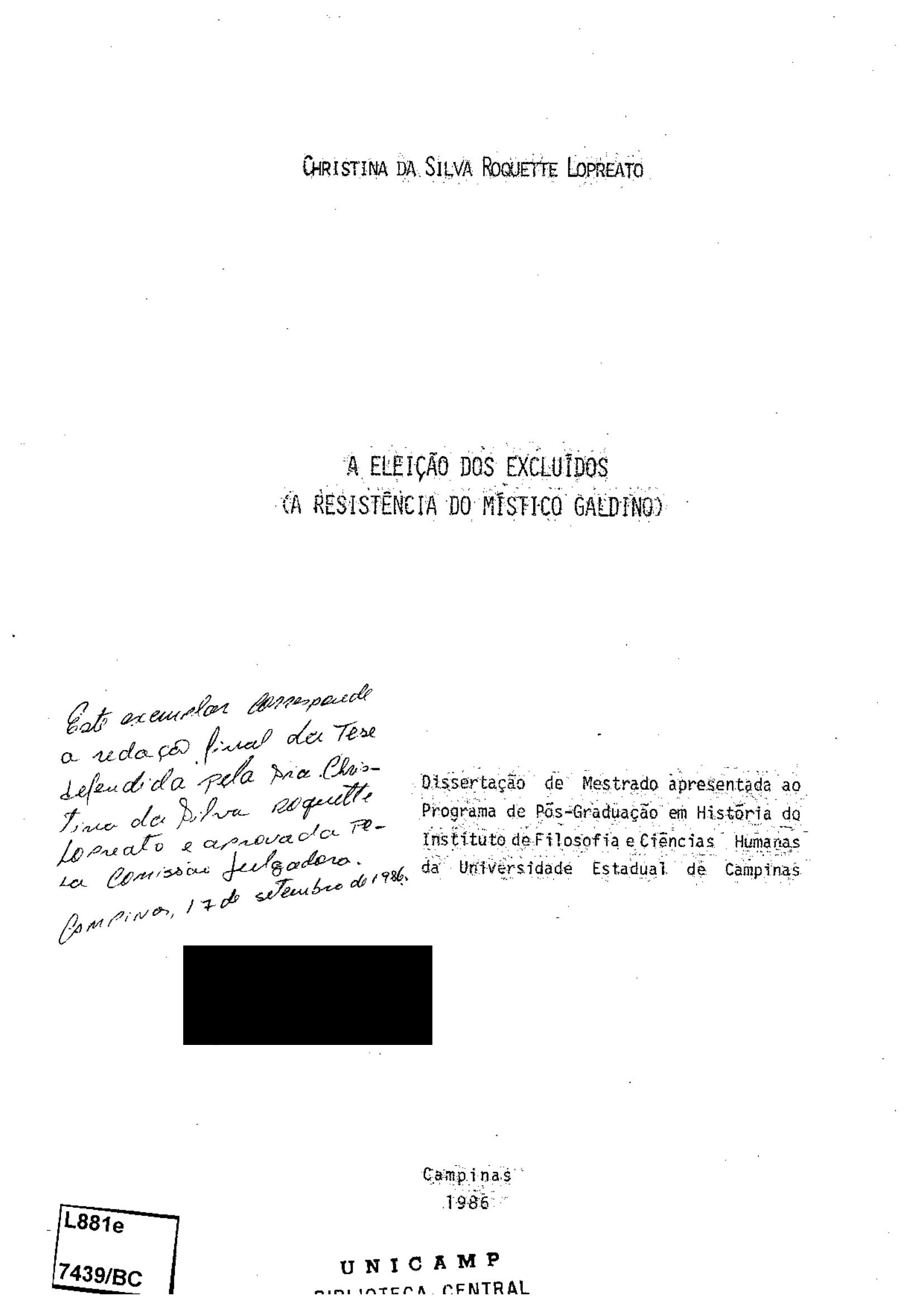 Christina da Silva Roquette Lopreato (Orientador: Peter Louis Eisenberg)